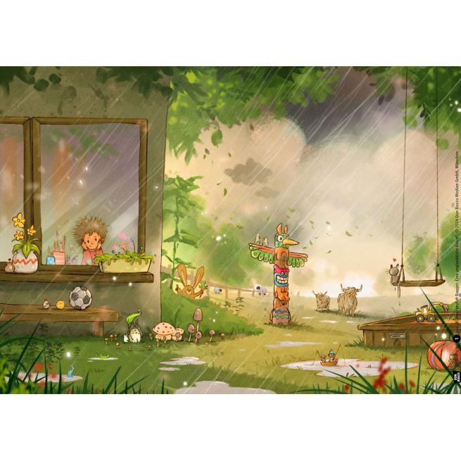 Pitschnass ist es draußen, denn es hört einfach nicht auf zu regnen. Der kleine Robert versucht dem Wetter zu trotzen und spielt dennoch im Nieselregen im Sandkasten. So richtig viel Spaß macht das bei all der Nässe aber irgendwie nicht und der Sand lässt sich auch nicht vernünftig auftürmen. Robert ist ganz schön frustriert, als plötzlich sein gelber Spielzeugbagger mit ihm spricht und sie gemeinsam Gräben und Löcher baggern, damit das Wasser abfließen kann. Als es jedoch immer stärker regnet, beschließen Robert, der Bagger und die Uhrenfee Uhrsula, einfach gemeinsam dorthin zu reisen, wo das schlechte Wetter herkommt.