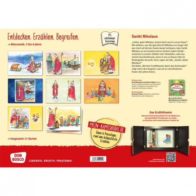 Wer oder was wird eigentlich am 6. Dezember, am Nikolaustag gefeiert? Und warum kommt der Nikolaus überhaupt heute auch noch in unser Haus? Was gefeiert wird, wenn unterschiedliche Feste anstehen, erfahren die Kinder anhand der Bildkartenreihe Mit dem Erzähltheater durch das Kirchenjahr. Und wer der gute Bischof Nikolaus vor langer, langer Zeit war, finden die Kinder mithilfe dieser Bildkarten fürs Kamishibai heraus.