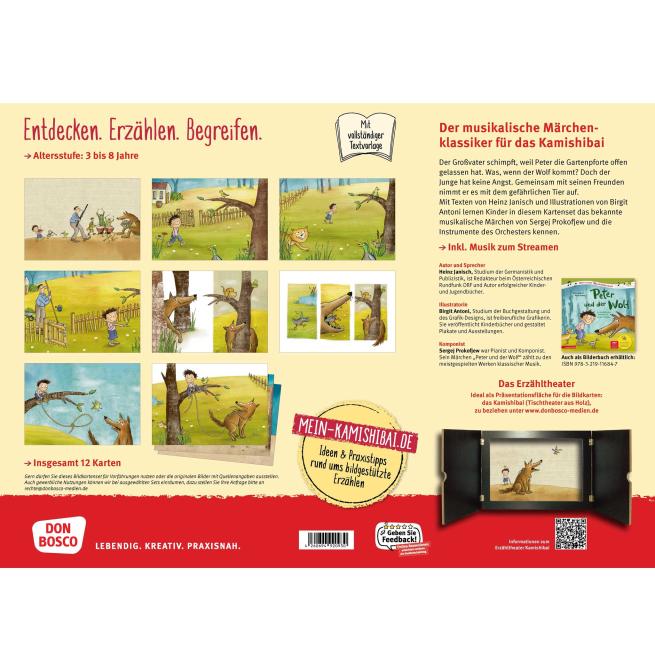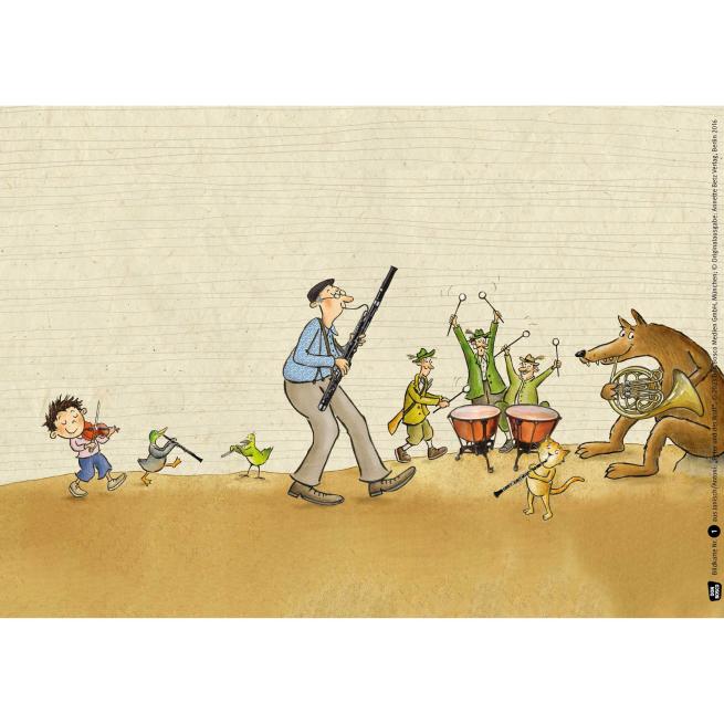 Kennen Ihre Kinder schon einzelne Musikinstrumente bzw. klassische Musik? Auf anschauliche Weise stellen Sie ihnen im Erzähltheater Kamishibai mithilfe des musikalischen Märchens rund um Peter und den Wolf einzelne Instrumente und die besondere Form von Musik vor. Die Musik dazu streamen Sie über die Web App MuBiBu. Dass Peter stets die Gartenpforte schließen soll, weiß er eigentlich, denn sein Großvater hat es ihm schon so oft gesagt. Schließlich könnte der böse Wolf einfach hineinspazieren. Als Peter die Pforte offenlässt, ist sein Großvater entsprechend sauer. Doch Peter hat keine Angst und will sich dem Wolf gemeinsam mit seinen Freunden, dem Vogel, der Katze und der Ente stellen.