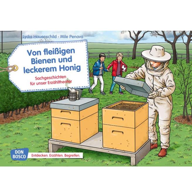 Wie fleißig Bienen sind, damit wir leckeren Honig essen und schöne Bienenwachskerzen anzünden können, erleben Ihre Kinder zusammen mit den beiden Freunden Ben und Amir aus dieser Geschichte fürs Kamishibai. Bildkarte für Bildkarte erleben sie, wie die beiden Freunde Bens Mutter bei ihrem aufregenden Hobby helfen: Bens Mutter ist nämlich Imkerin.