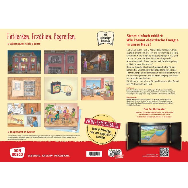Strom ist für uns alle so selbstverständlich, dass wir uns erst mit ihm beschäftigen, wenn z. B. Computer, Kühlschrank oder das Licht mal ausfallen. Was also ist Strom, wie kommt er in unsere Steckdosen, was ist ein Sicherungskasten, wie sieht er aus und was macht eigentlich ein Elektroniker? Wie gehe ich verantwortungsvoll und sicher mit Strom und elektrischen Geräten um? Antworten auf diese wichtigen Fragen erhalten die Kinder anhand der detailreichen Sachgeschichte für das Erzähltheater Kamishibai.