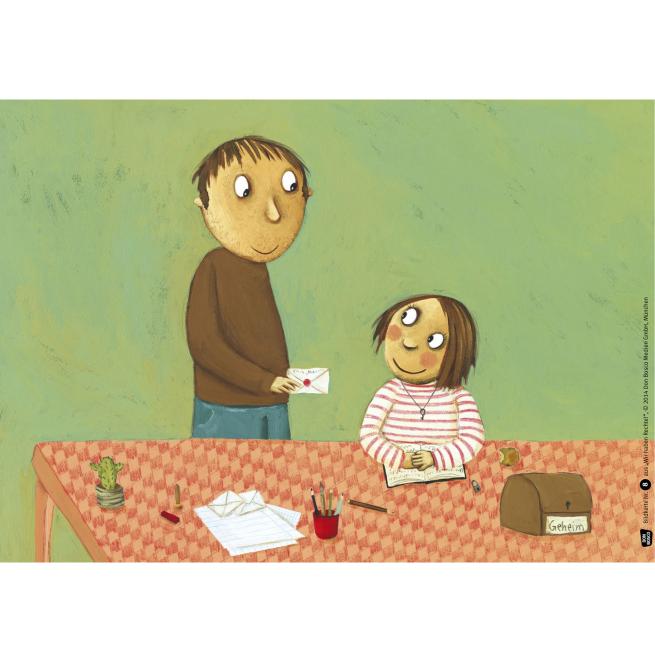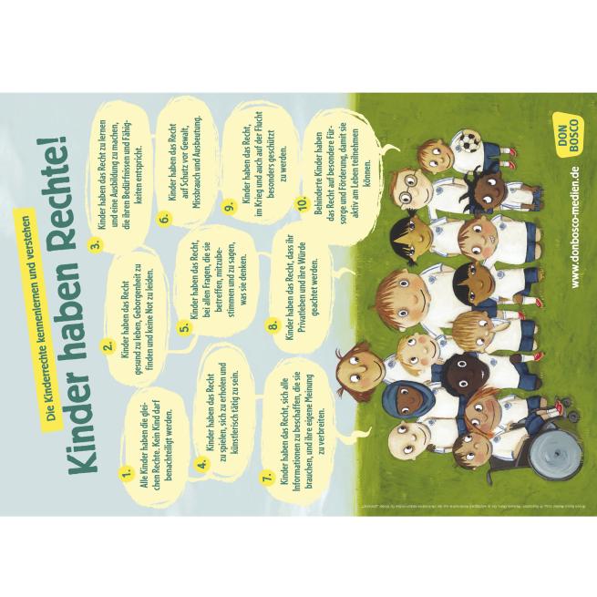 12 farbig illustrierte Bildkarten mit Textvorlage, DIN A3, fester 300 g-Karton, inklusive Kinder-Rechteplakat zum Aufhängen
