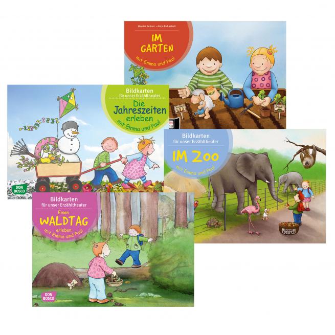 Mit diesen 4 Bildkarten-Sets erleben Sie schon mit Ihren Kleinsten im Erzähltheater Kamishibai tolle Geschichten.