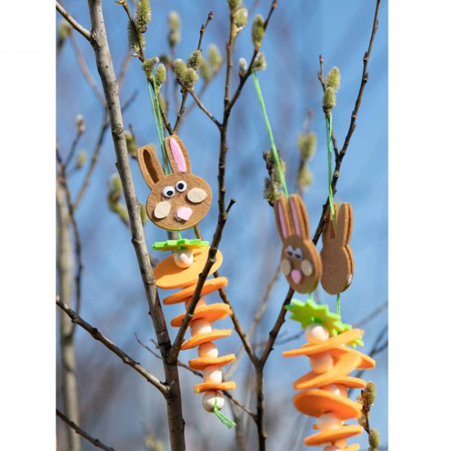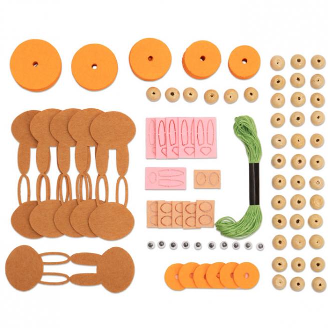 Im Nu fädeln Ihre Kinder die Filz-Scheiben, Holzperlen und Köpfe zu lustigen Anhängern auf. Witzige Wackelaugen geben Charakter.