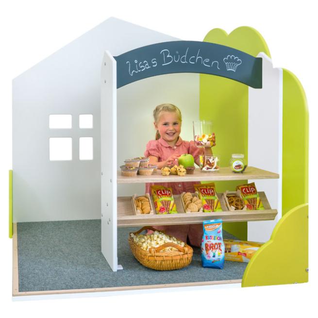 Ein Muss für jeden Kiga: der Kaufladen. Perfekt in die Spielecke (Art.-Nr. 13941) integrierbar. Bogen mit Kreide beschreibbar. Mit zwei Ablagefächern. Zur Selbstmontage.