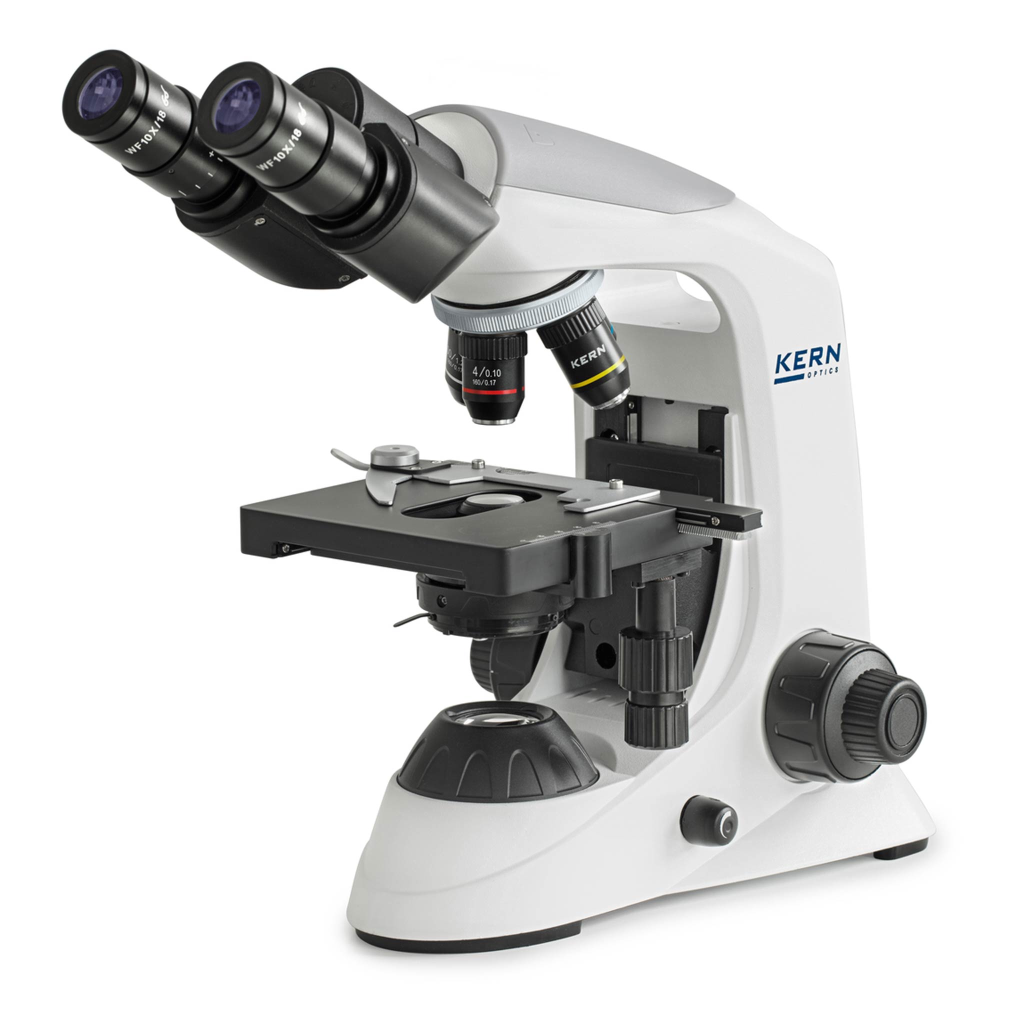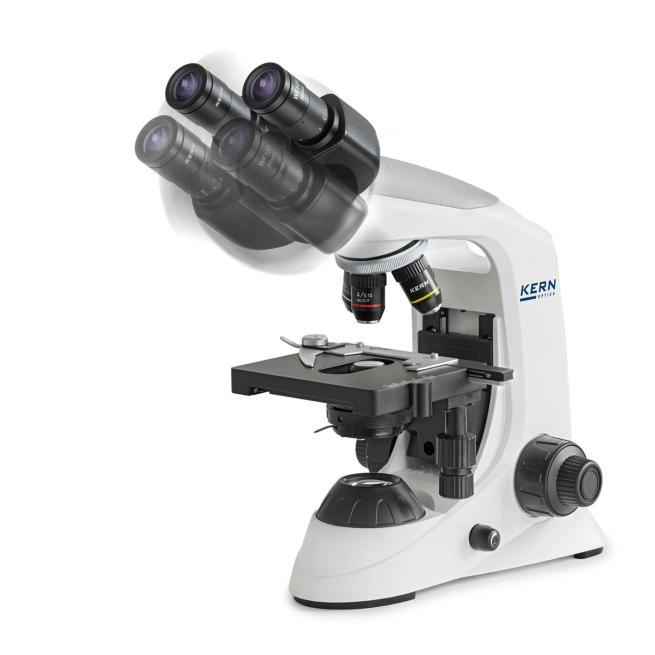 • 1 OBE-122-Durchlichtmikroskop von KERN in binokularer Bauweise und mit drehbarem Tubus (inklusive 3 vormontierter Objektive für 4-, 10- und 40-fache Vergrößerung, inklusive 1,25-Abbe-Kondensor)