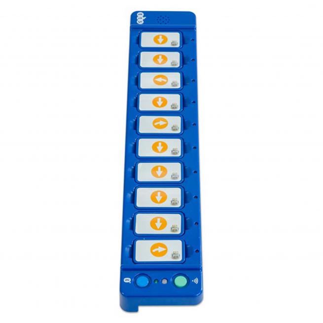 Wie die Kinder den lustigen kleinen Kriechroboter Blue-Bot so programmieren, dass er genau dorthin fährt, wo sie es möchten, entdecken sie mit der Programmier-Leiste. Dazu ordnen die Kinder die einzelnen Chips mit den Richtungspfeilen (vor, zurück, rechts, links) auf der Leiste entsprechend ihres gewünschten Bewegungsablaufes an.