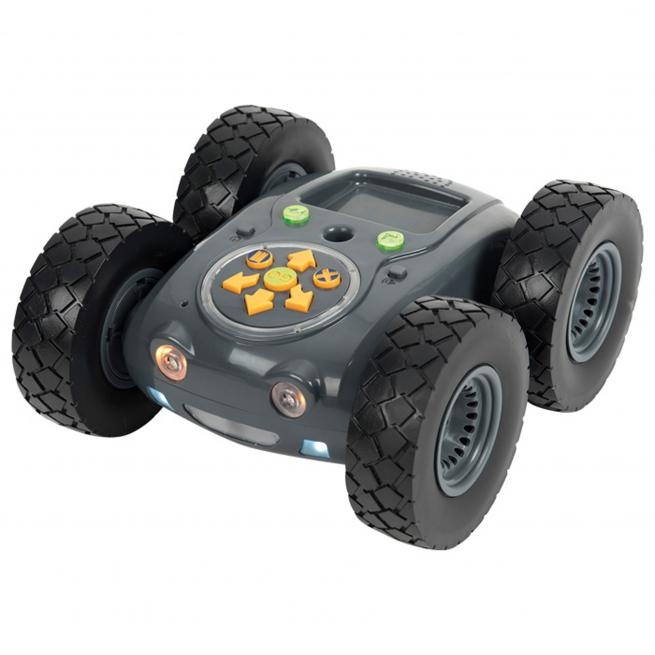 Im Außenbereich lassen Ihre Kinder den Geländeroboter ihre zuvor einprogrammierten Bewegungsabläufe abfahren. Diese geben sie einfach über das Feld mit den gelben Tasten ein.