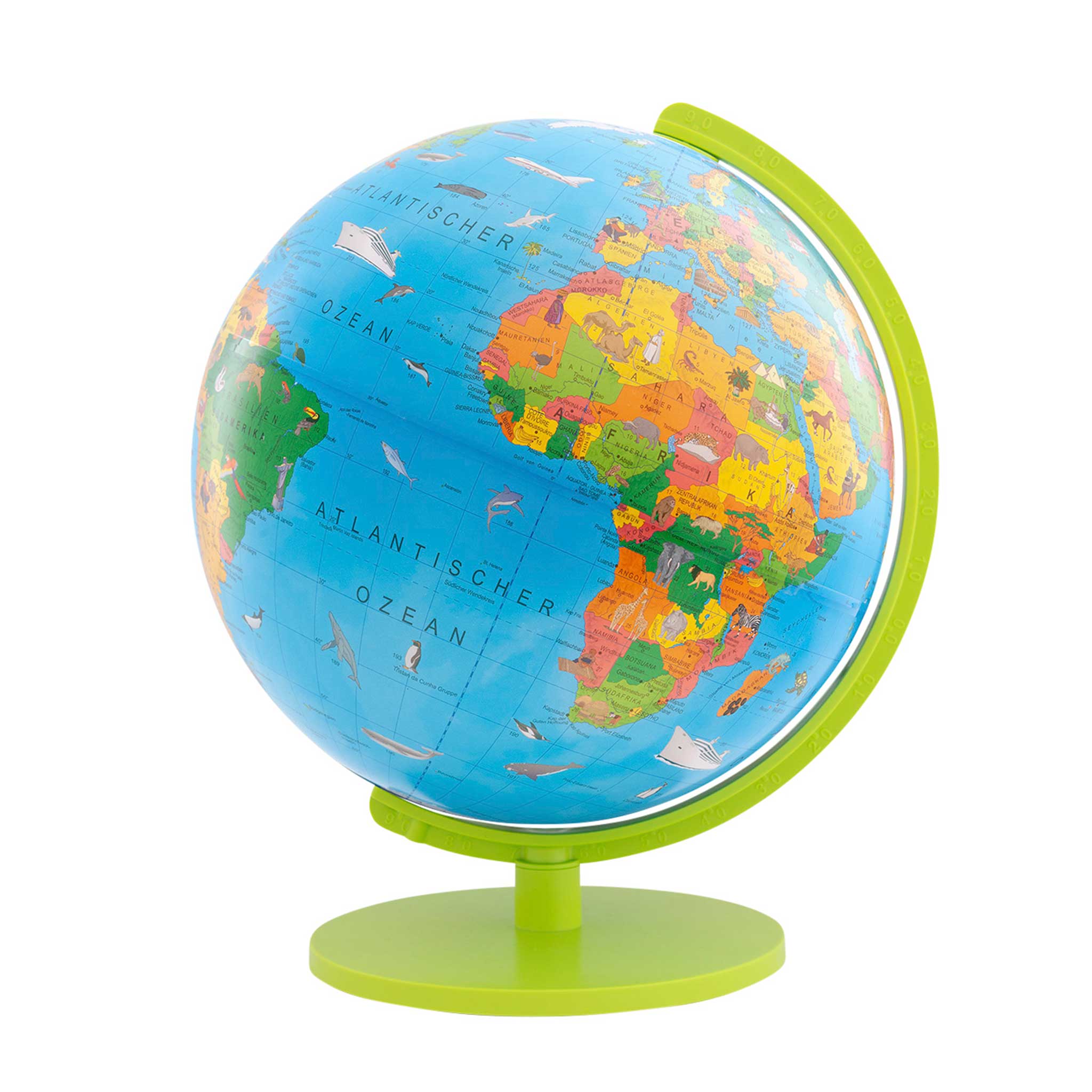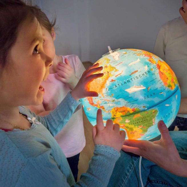 Die Welt als Kugel zu begreifen ist für Kinder nicht ganz einfach. Mit dem Leuchtglobus und seinen kindgerechten Darstellungen erfahren sie sehr viel Wissenswertes über unsere Erde, Kontinente, Lebensräume, Tierwelt. Der Globus hat eine fest verbaute Leuchtquelle.