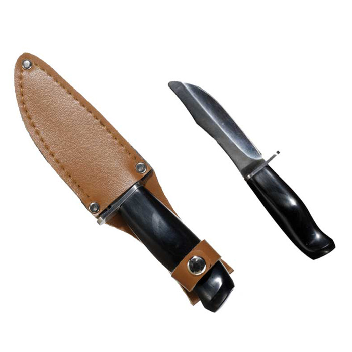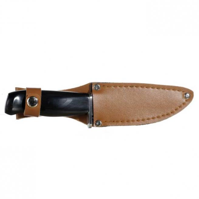 Kinder-Schnitzmesser mit abgerundeter Spitze, denn Sicherheit geht vor. Ausgezeichnete Schneidequalität, rutschfester Griff, stabile Klinge. In der Ledertasche mit Gürtelschlaufe ist das Schnitzmesser sicher verstaut.