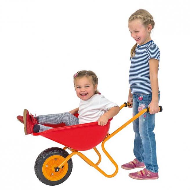 Die äußerst strapazierfähige Schubkarre für Kinder entspricht in Qualität und Design genau einem Gartengerät für Erwachsene. Größe und Funktion sind optimal an die Bedürfnisse der Kleinen angepasst. Im Spiel ahmen Ihre Kinder perfekt die Arbeit der Großen nach.