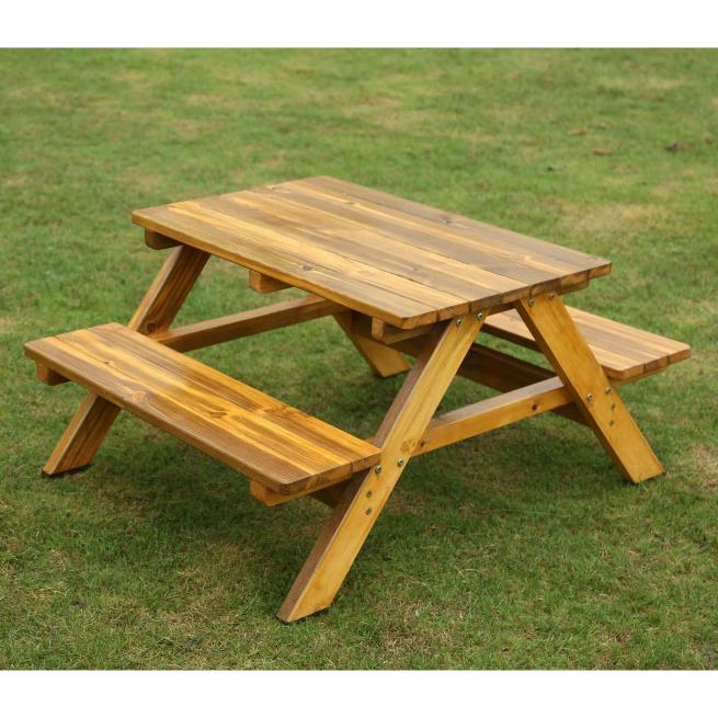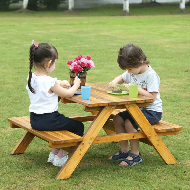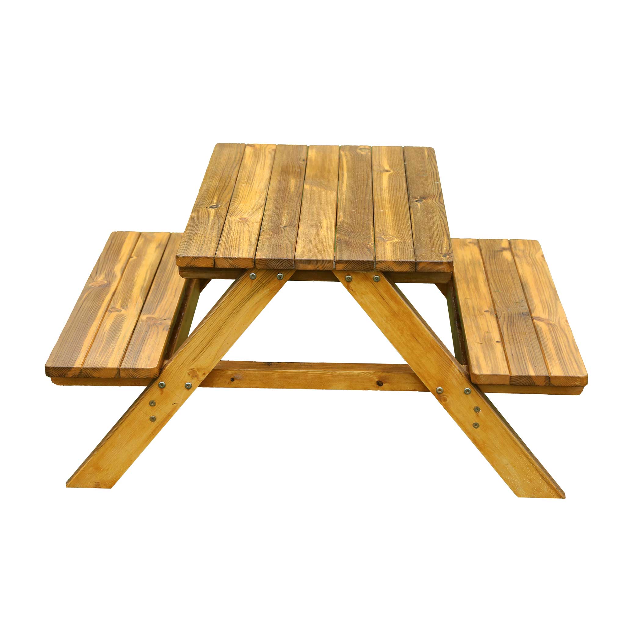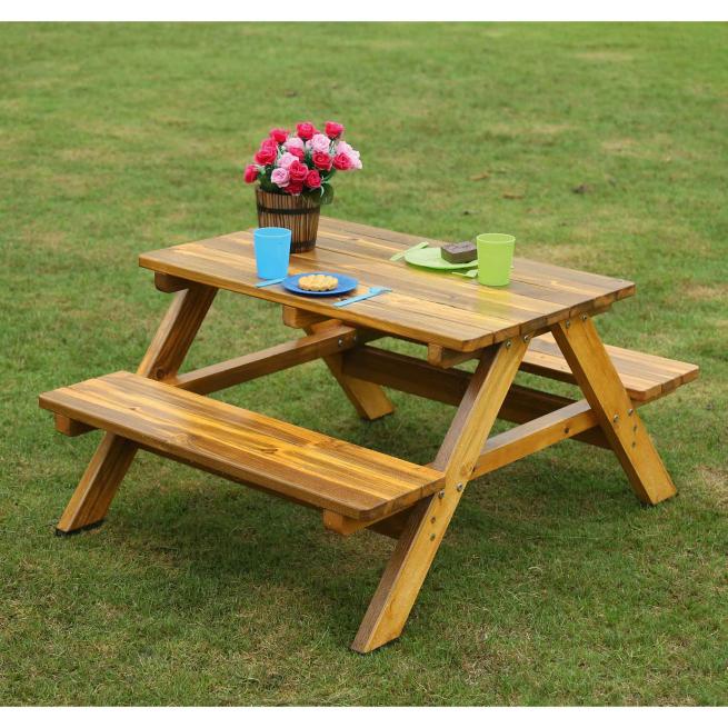 An der robusten Sitzgelegenheit haben bis zu 4 Kinder Platz. Tisch und Bänke sind stabil miteinander verbunden. Zur einfachen Selbstmontage. 5 Jahre Herstellergarantie.