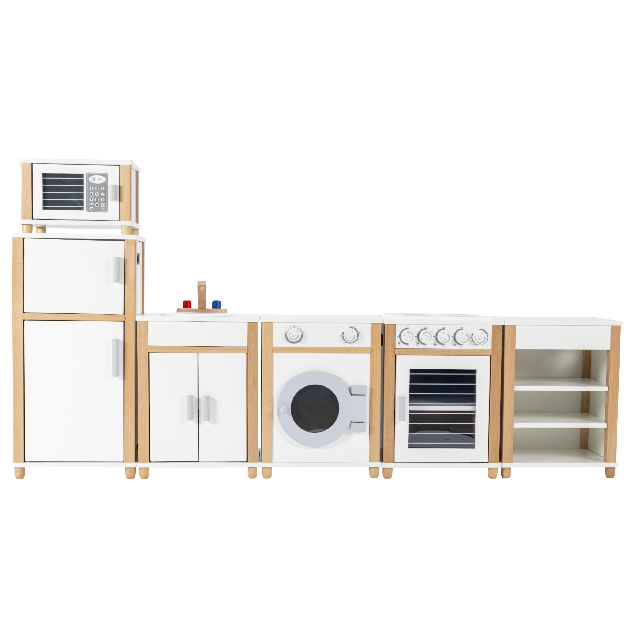Diese Kinderküche ist flexibel: Wählen Sie zwischen der Variante mit Mikrowelle für noch realistischeres Spielen oder der kompakteren Version ohne Mikrowelle. Ob allein oder in der Gruppe – hier rühren, braten, backen und servieren die angehenden Kochprofis. Die Kinderküche fördert kreatives Spielen, soziale Fähigkeiten und die Feinmotorik. Die robuste Verarbeitung aus Holz hält dem turbulenten Kita-Alltag mühelos stand. Und damit es gleich losgehen kann, ist die Küche einfach zu montieren.