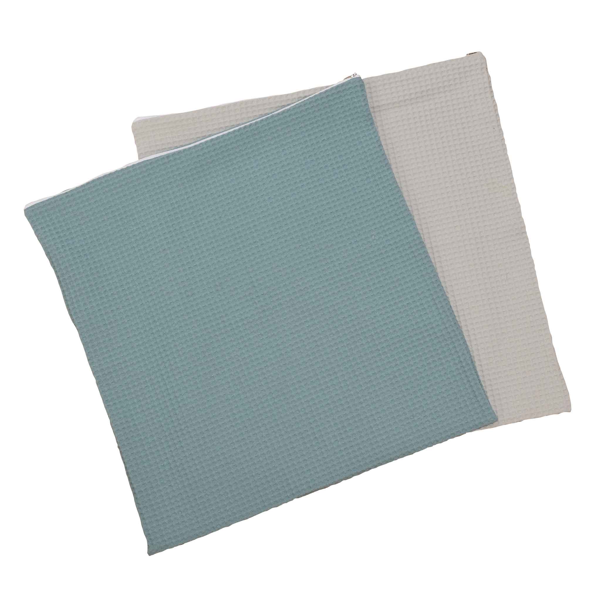 Die Kissenhüllen aus atmungsaktivem Waffeltuch in Hellgrau oder Petrolgrün erhalten Sie jeweils im Doppelpack. Wählen Sie einfach Ihre bevorzugte Größe und Farbe. Das Waffelgewebe ist formstabil, schnell trocknend und fühlt sich auf der Haut sehr angenehm an. Optimal in Kinderbetten. Mit Reißverschluss.