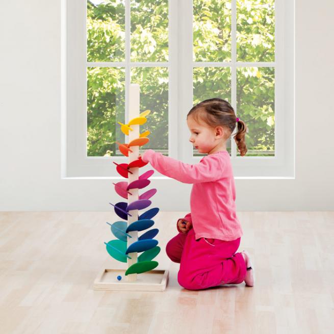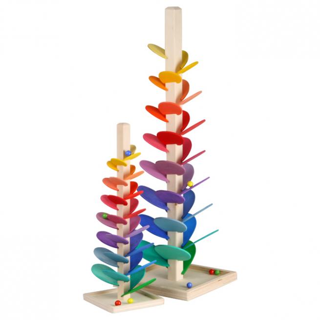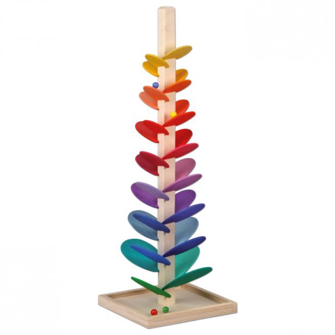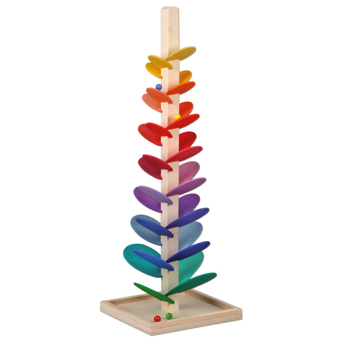 Ein Klangbaum verbindet die Faszination einer Kugelbahn mit dem Hörerlebnis der verschiedenen Klänge der Baumblätter. Die Glasmurmeln einfach die Blätter herunterlaufen lassen und lauschen. Ein tolles Erlebnis für die Sinne. Die bunten Klangbäume sind darüber hinaus auch sehr dekorative Möbelstücke.