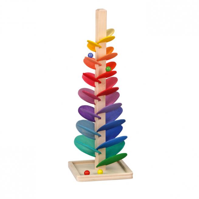 Ein Klangbaum verbindet die Faszination einer Kugelbahn mit dem Hörerlebnis der verschiedenen Klänge der Baumblätter. Die Glasmurmeln einfach die Blätter herunterlaufen lassen und lauschen. Ein tolles Erlebnis für die Sinne. Die bunten Klangbäume sind darüber hinaus auch sehr dekorative Möbelstücke.