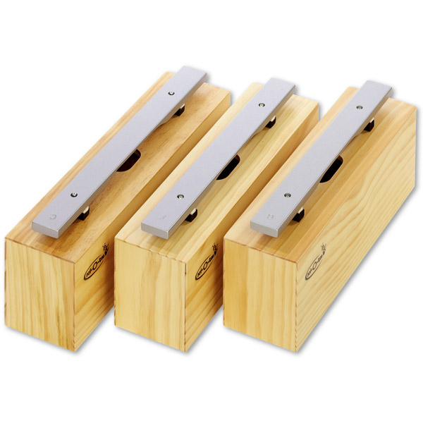 Die Klangstäbe aus Leichtmetall sorgen gemeinsam mit den Resonanzkästen aus Kiefernholz für ein exzellentes Klangspektrum der einzelnen Bausteine. Jedem Klangbaustein ist ein eigener Schlägel beigefügt.