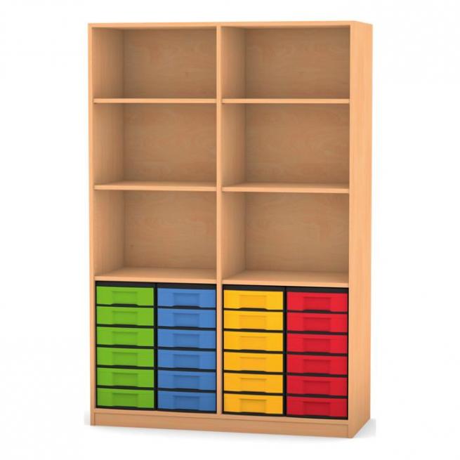 Klassenregal mit 24 flachen Boxen