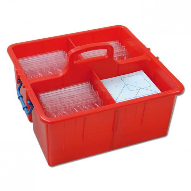 Mit 30 transparenten Geometriebrettern (Art-Nr.: 1846) in einer Tragebox aus Kunststoff. Einen Satz Vorlagekarten erhalten Sie gratis dazu.