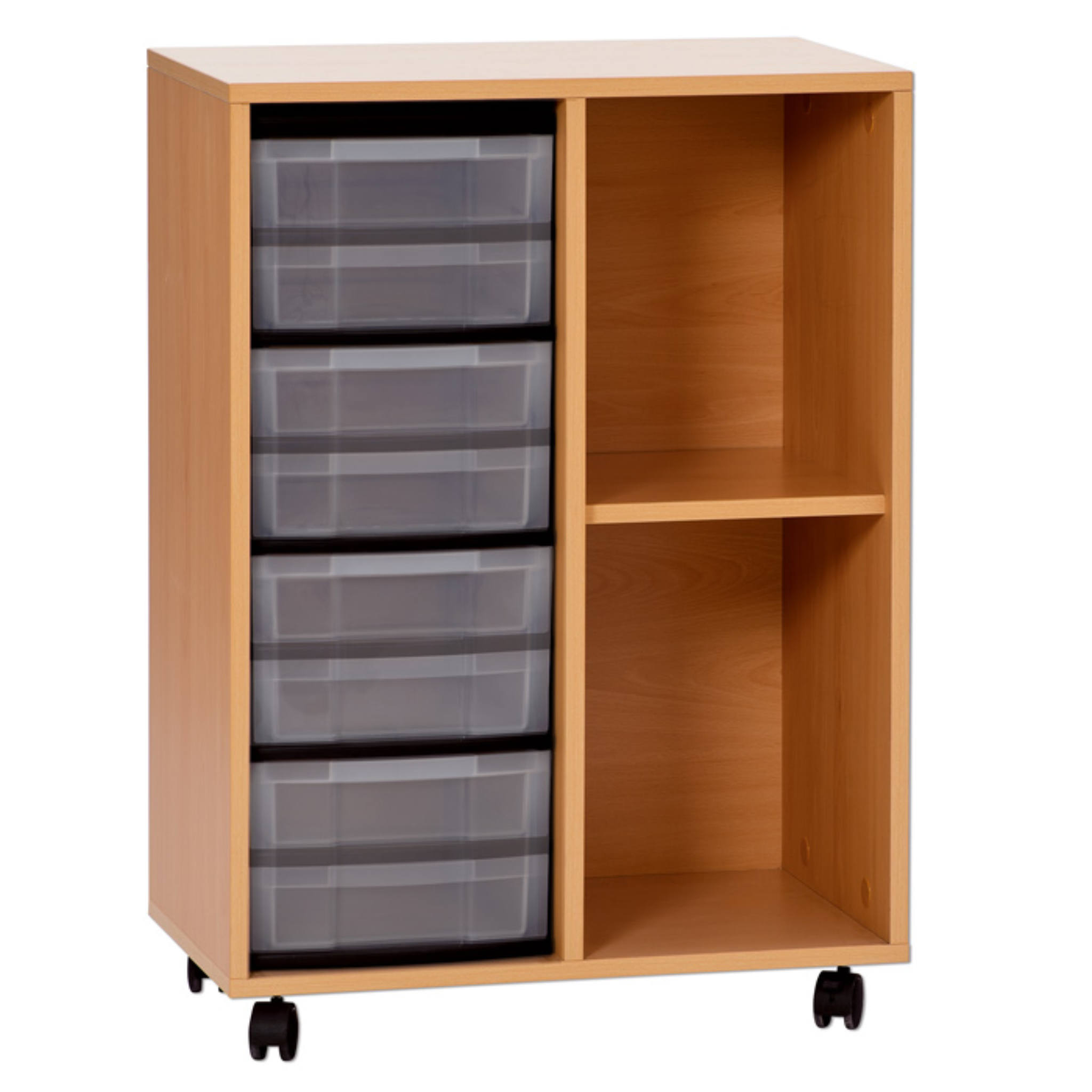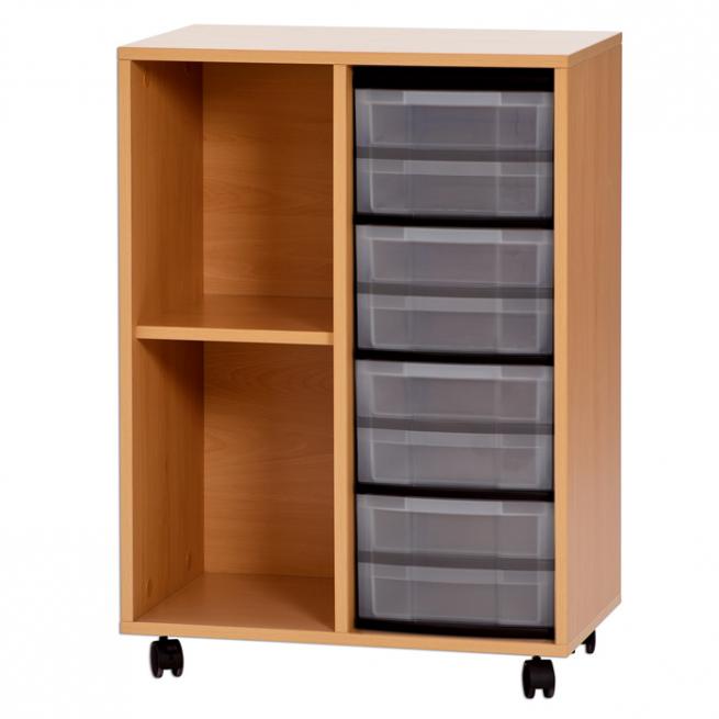 Klassenzimmerregal, 66,5 x 40,8 cm, mit 2 Fächern und 8 Boxen