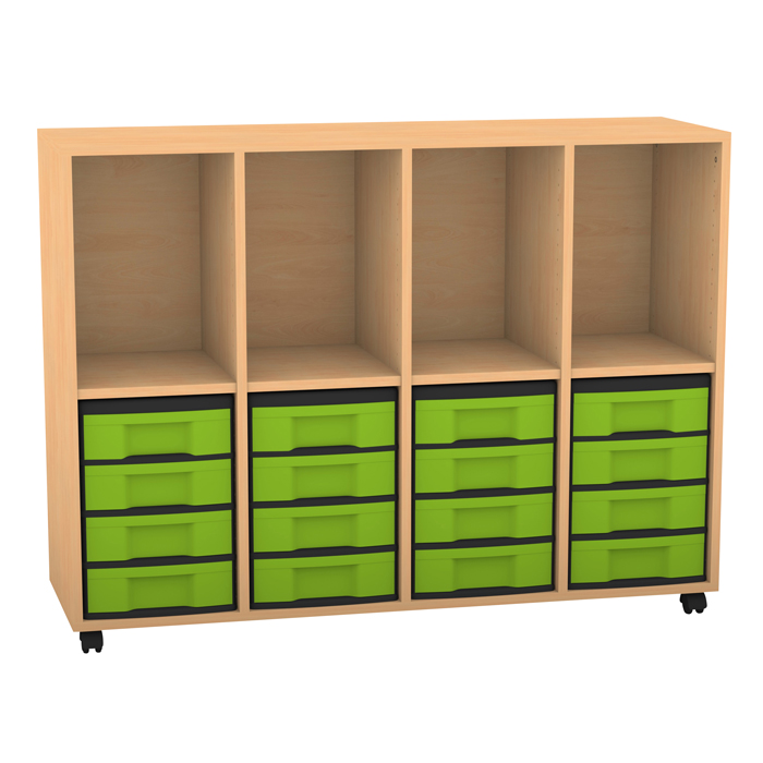 Klassenzimmerregal, 98 x 40,8 x 130,7, mit 4 Fächern und 16 Boxen
