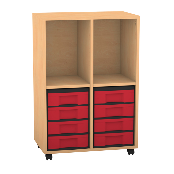 Klassenzimmerregal, 98 x 40,8 x 66,5, mit 2 Fächern und 8 Boxen