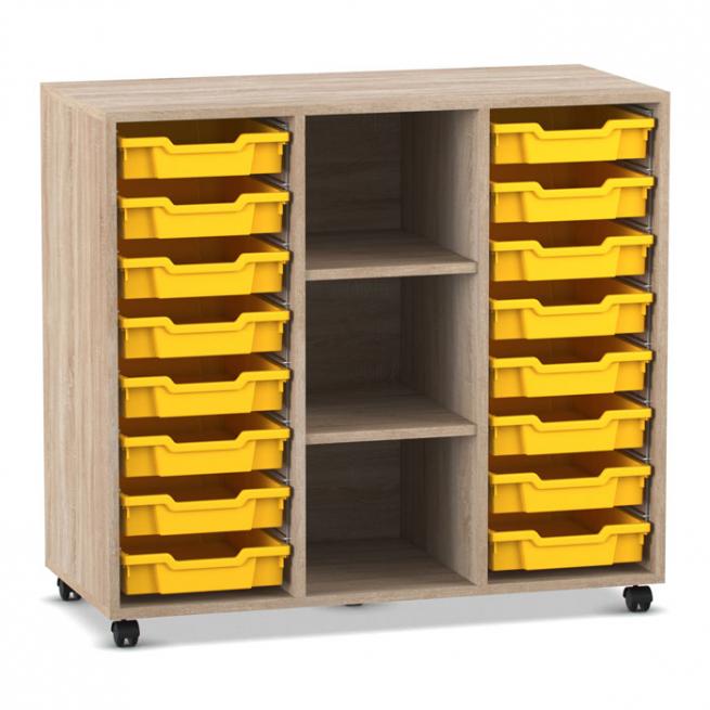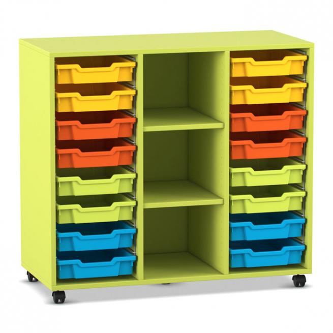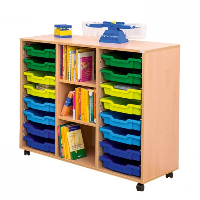Klassenzimmerregal, 99,1 x 108,5 x 48, mit 16 Gratnells-Boxen und 2 Böden