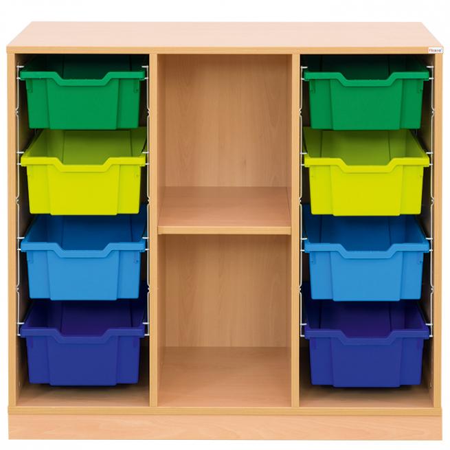 Klassenzimmerregal, 99,1 x 108,5 x 48, mit 8 Gratnells-Boxen und 1 Boden