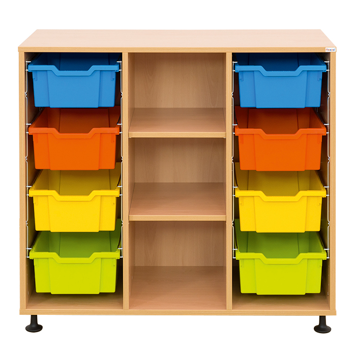 Klassenzimmerregal, 99,1 x 108,5 x 48, mit 8 Gratnells-Boxen und 2 Böden