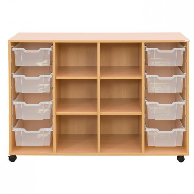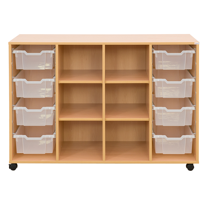 Klassenzimmerregal, 99,1 x 143,9 x 48, mit 8 Gratnells-Boxen und 4 Böden
