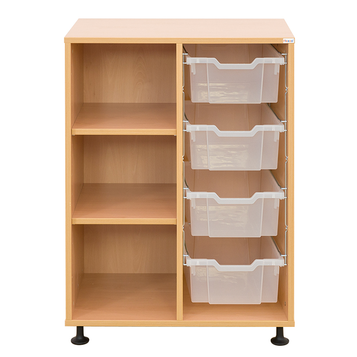 Klassenzimmerregal, 99,1 x 73,1 x 48, mit 4 Gratnells-Boxen und 2 Böden