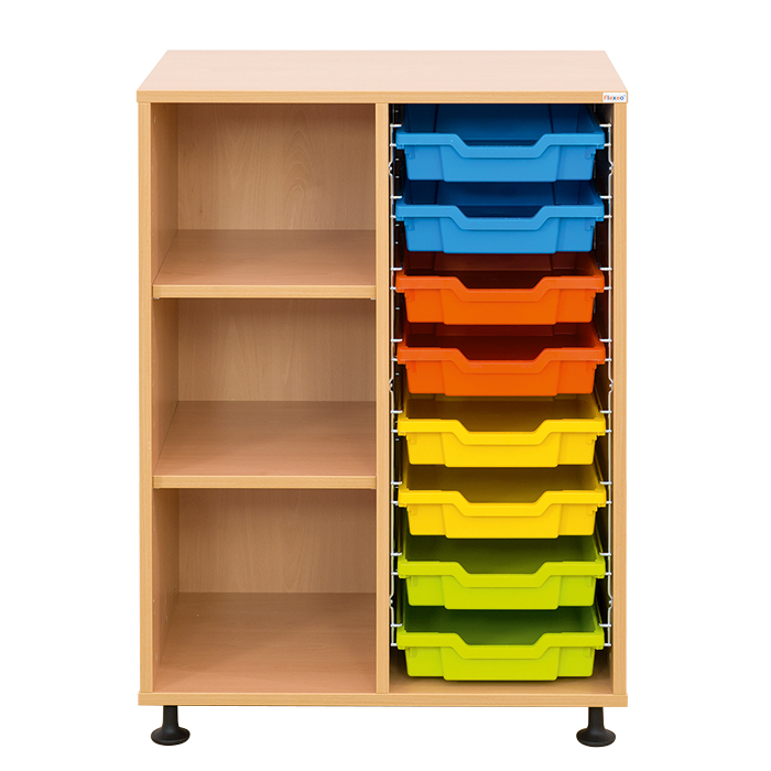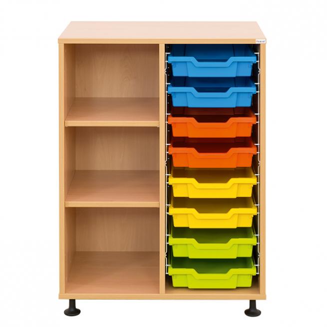 Klassenzimmerregal, 99,1 x 73,1 x 48, mit 8 Gratnells-Boxen und 2 Böden