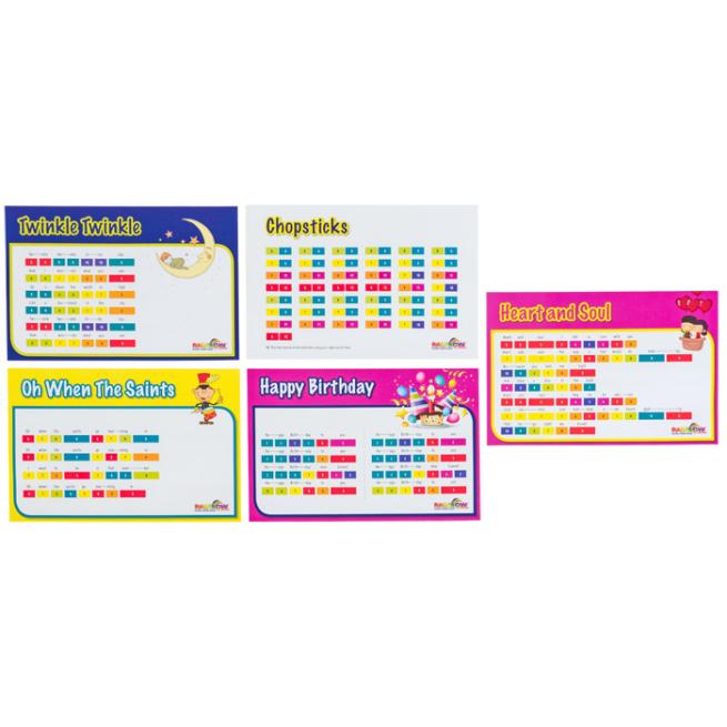 • 5 Songkarten mit je 2 Liedern im Farbcode der Tasten