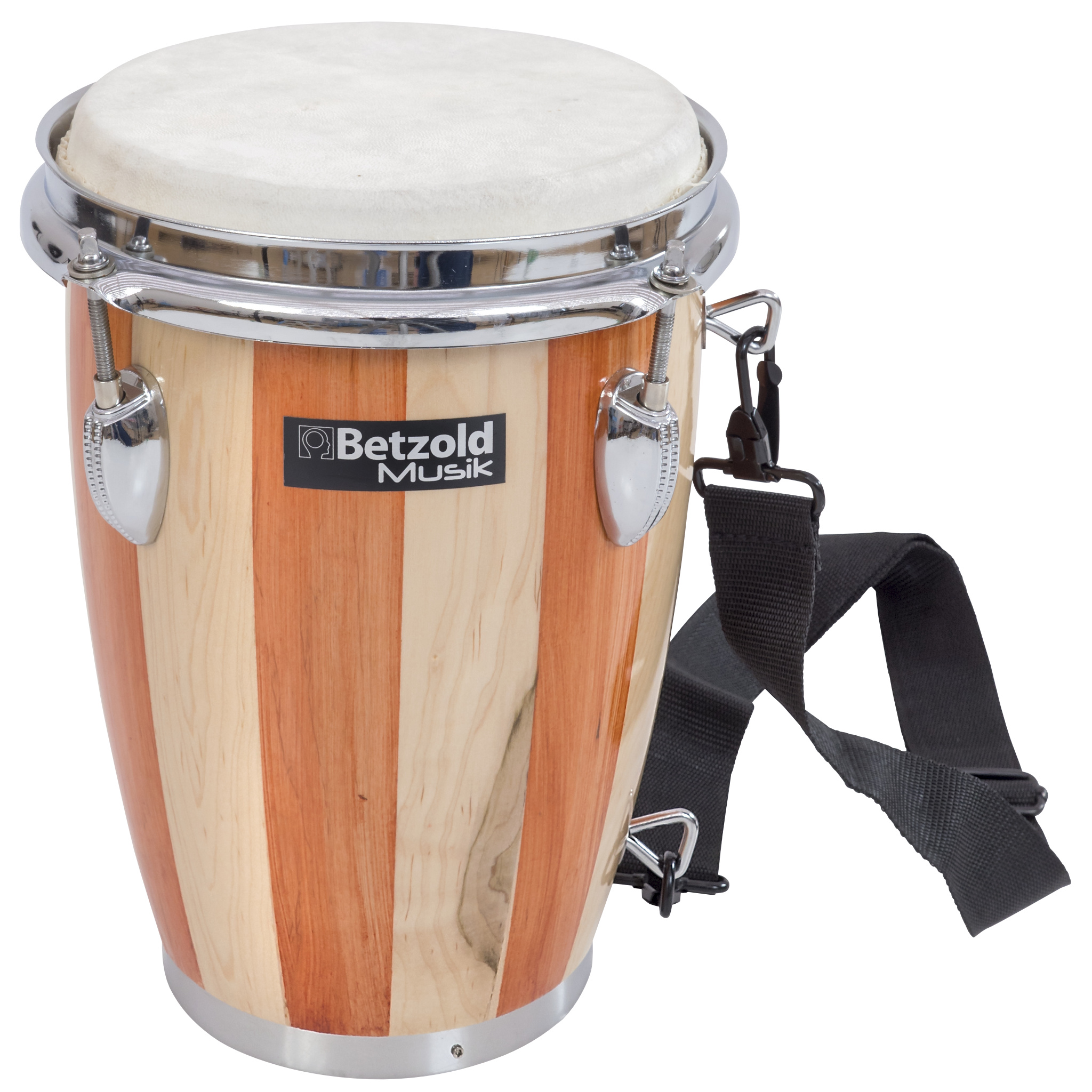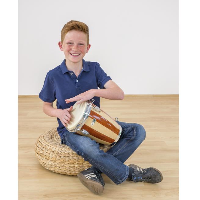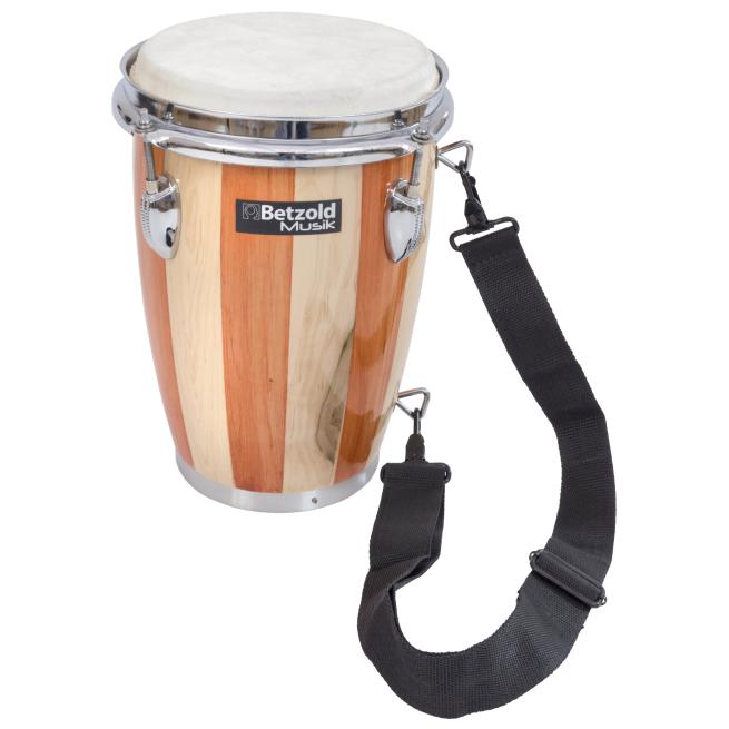 Kleine Congas klingen hoch und kräftig. Das ist auch hier der Fall. Das Instrument ist 28 cm hoch, Ø 20 cm. Der Kessel besteht aus Holz. Das Naturfell wird mithilfe von 4 Schrauben gespannt. Der Trageriemen (80% Nylon, 20% Elastan) ist im Lieferumfang enthalten.