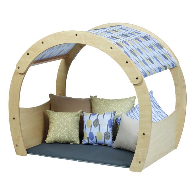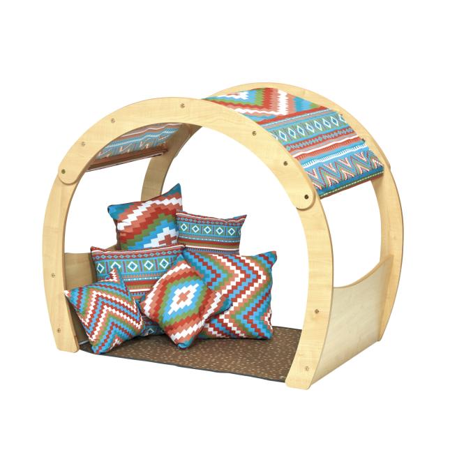 Ob unter Wasser, zu Gast bei den Azteken, in einem Lavendelfeld oder auf einer grünen Wiese – jede kleine Kuschelhöhle entführt die Kleinen in eine ganz eigene Welt zum Zurückziehen und Träumen. Dach, Matte, 3 kleine und 3 große Kissen machen die Höhle so richtig gemütlich.