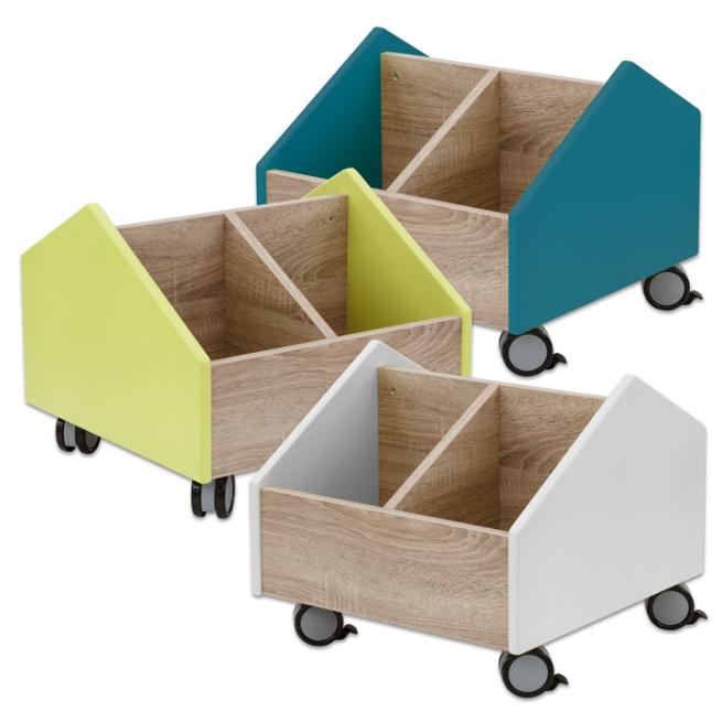 Bücher, Spielsachen, Bastelmaterialien, Bauklötze und noch viel mehr verstauen Ihre Kinder in dem kleinen Wagen mit jeweils 3 Fächern. Dank der praktischen Rollen schieben Sie den Wagen überall dorthin, wo sie ihn brauchen. Die Rollen sind feststellbar für den sicheren Stand. Erhältlich in Weiß, Limette und Petrol. Zur einfachen Selbstmontage.