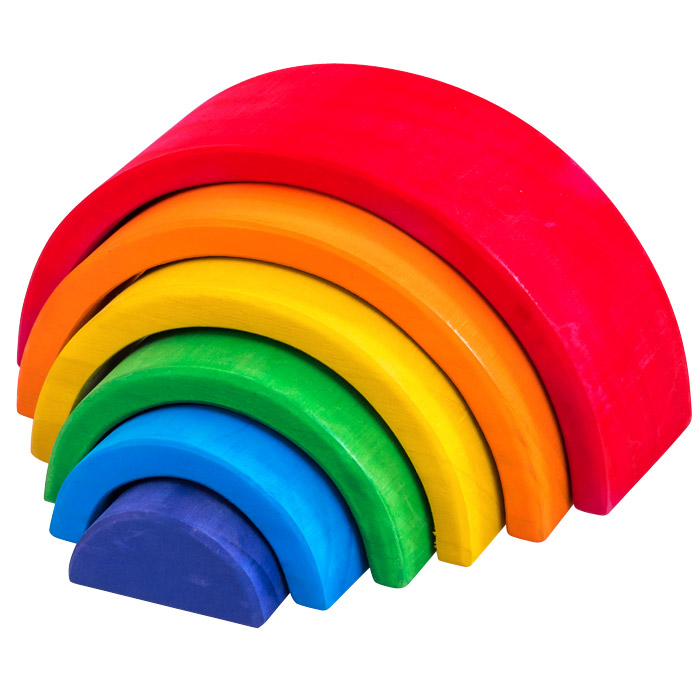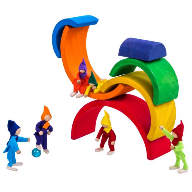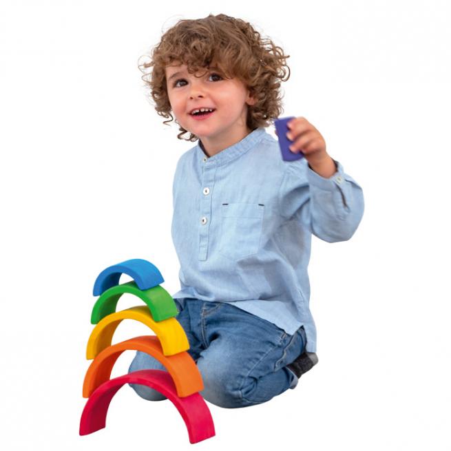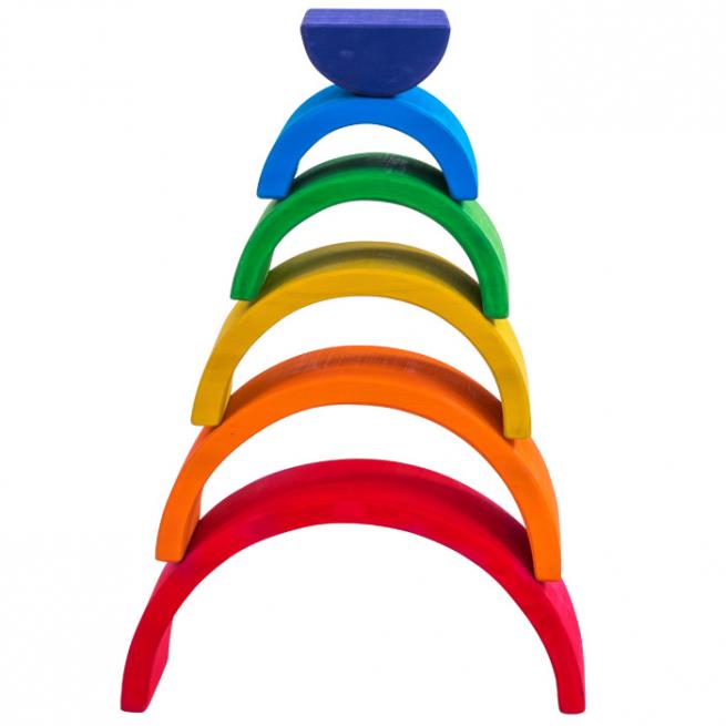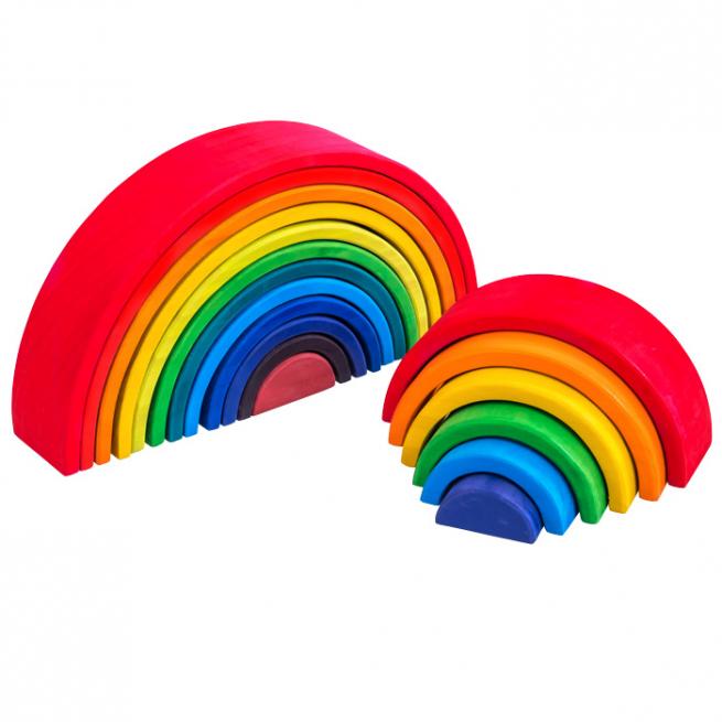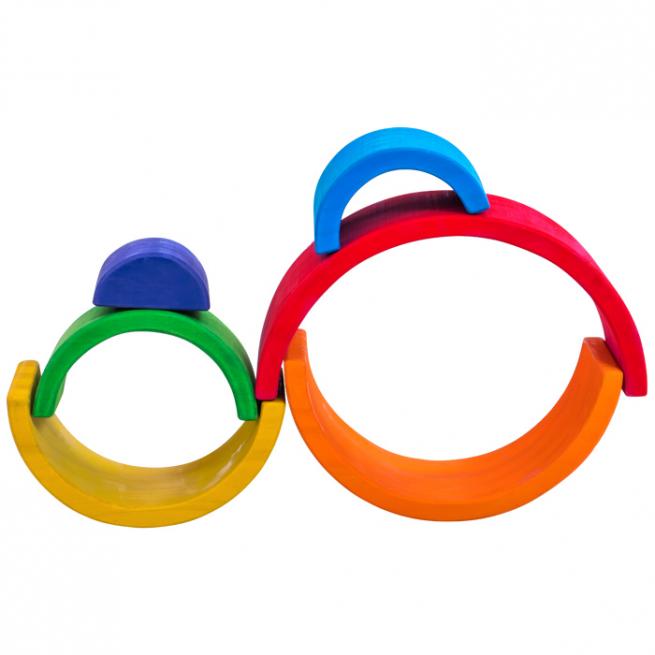 Super Training für Farbenlehre, räumliches Denken und Sensomotorik. Ob Wolkenscheiben oder kleine und große Regenbogen in starken Farben bzw. naturbelassen – alle Teile bestehen aus zertifiziertem Kiefernholz, sind abgerundet und für Kinderhände gut greifbar. Im Nu stapeln Ihre Kinder Türme, sortieren die einzelnen Elemente nach Farben oder bauen Tunnel, Höhlen oder sogar eine Kugelbahn.