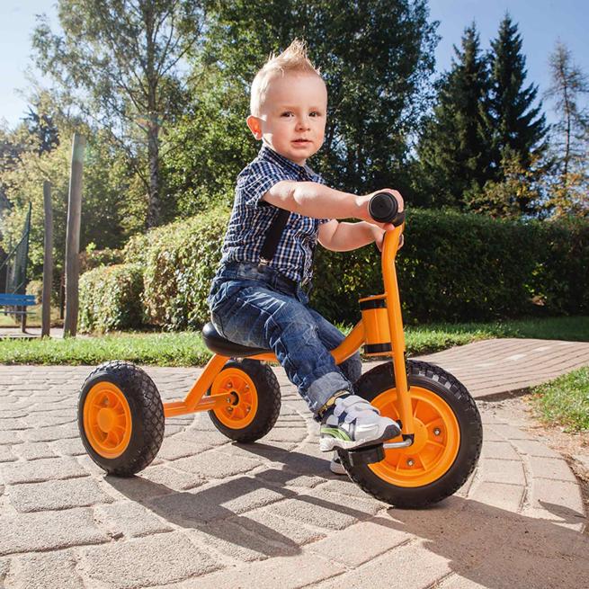 Mit diesem Fahrzeug können Kinder ihre Fähigkeiten in der Koordination von Treten und Lenken verbessern. Ab 1 Jahr.
