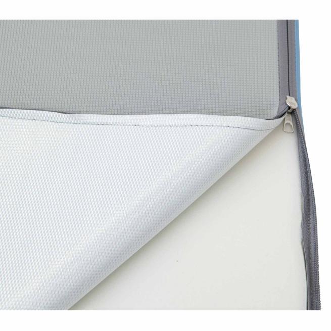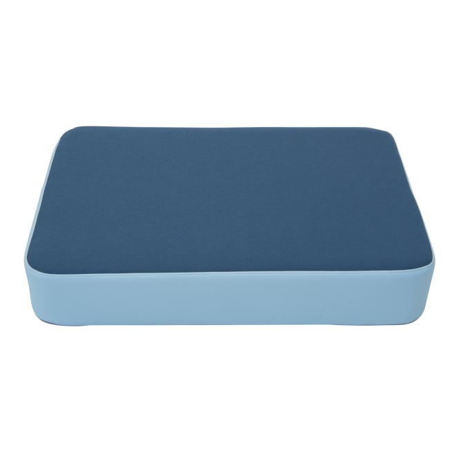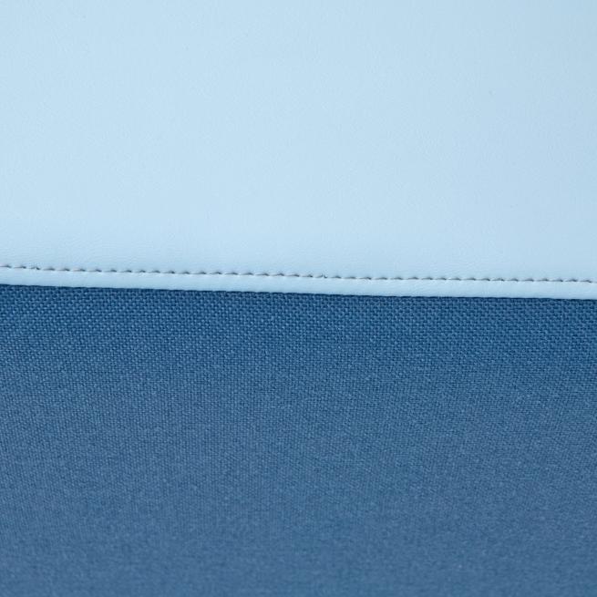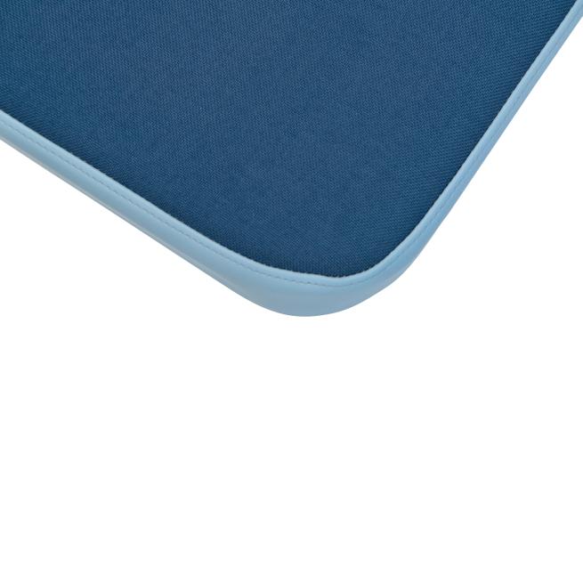 - Bezug oben: 100 % Polyacryl (PAN)<br/>Bezug seitlich: Kunstleder: 100 % Polyester mit Polychlorid-Beschichtung (PVC)<br/>Unterseite: Turnmattenstoff 65 % Polychlorid, 35 % Polyester