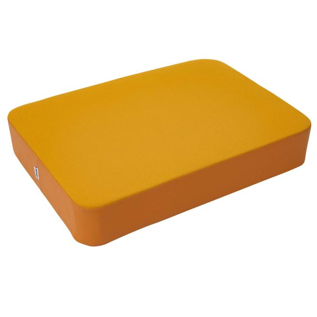 - Bezug oben: 100 % Polyacryl (PAN)<br/>Bezug seitlich: Kunstleder: 100 % Polyester mit Polychlorid-Beschichtung (PVC)<br/>Unterseite: Turnmattenstoff 65 % Polychlorid, 35 % Polyester