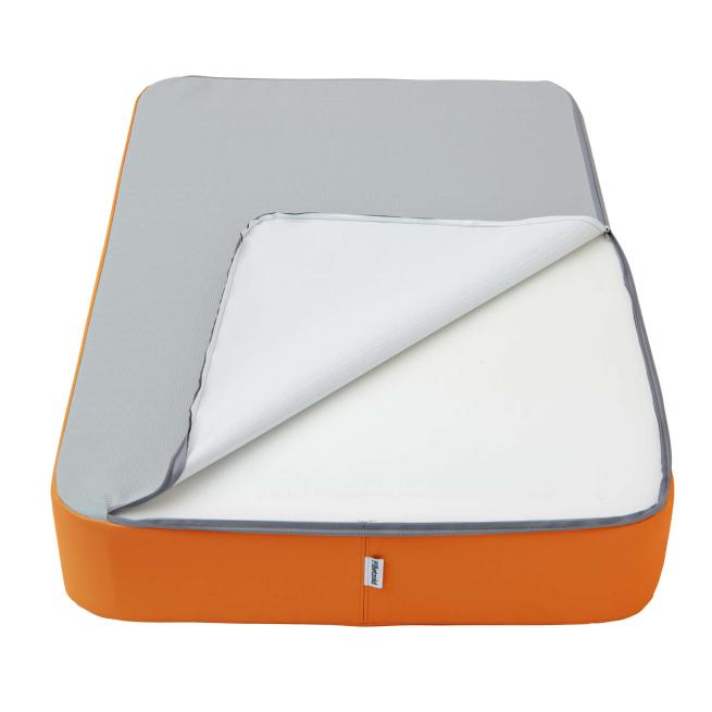 Der Textilbezug ist abnehmbar und lässt sich bei 40 °C schonend waschen. Hierfür einfach den Bezug auf links drehen und den Reißverschluss schließen. Ab 2 Jahren.