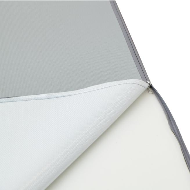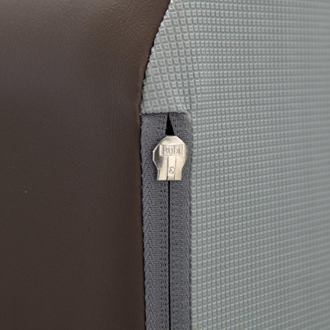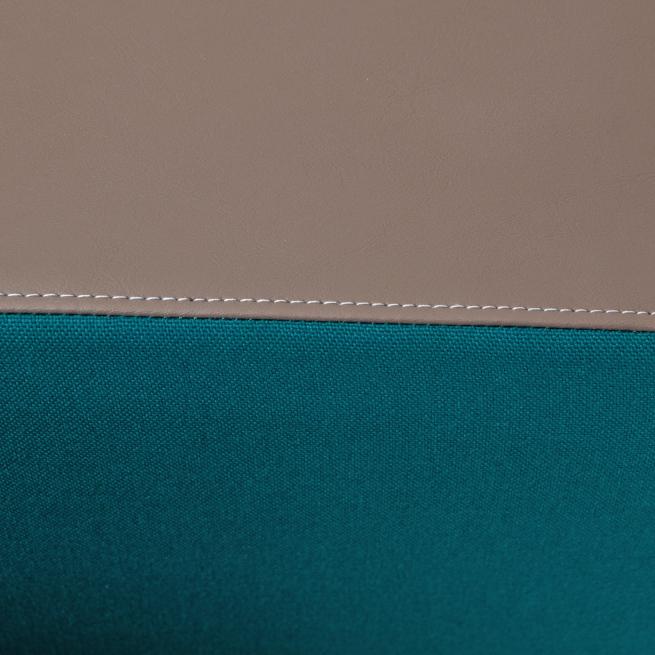 - Bezug oben: 100 % Polyacryl (PAN)<br/>Bezug seitlich: Kunstleder: 100 % Polyester mit Polychlorid-Beschichtung (PVC)<br/>Unterseite: Turnmattenstoff 65 % Polychlorid, 35 % Polyester