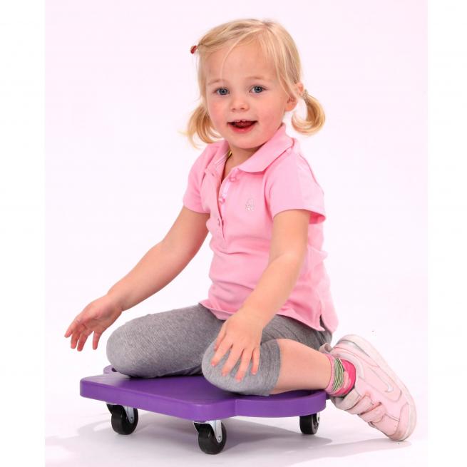 Schwung und Bewegung beim Sport bringt das kleine Rollbrett mit Flüster-Rollen. Die Kinder können sich aus eigener Körperkraft anschieben und fortbewegen. Zwei seitliche Griffe bieten Halt und schützen die Finger.