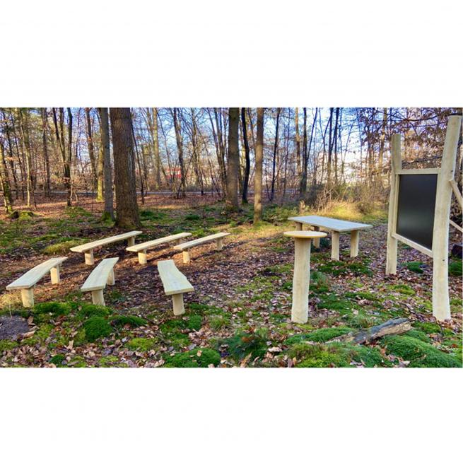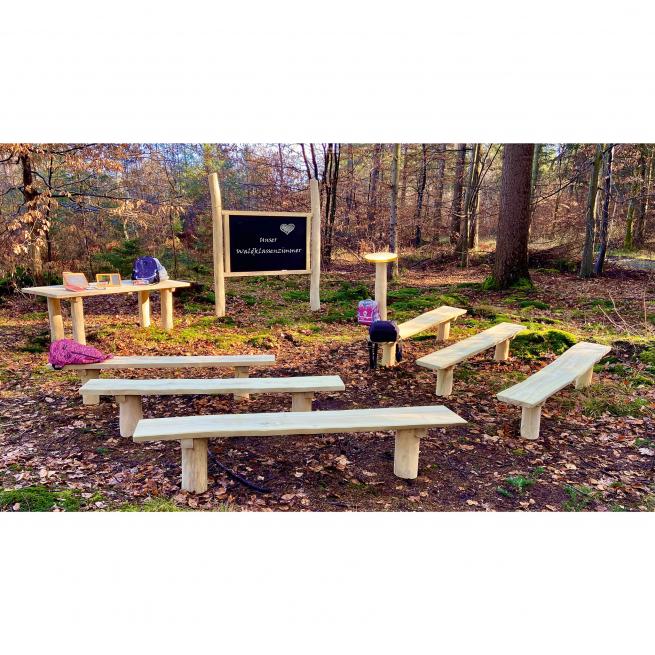 Vermitteln Sie Ihren SuS mitten im Lernort Natur lebendiges Wissen über die wichtigen Bildungsthemen Umweltbewusstsein und Naturschutz. Ob z. B. im Schulgarten oder auf der schuleigenen Rasenfläche – im Waldklassenzimmer unter freiem Himmel stellen Sie die Verbindung zur Natur besonders authentisch her. Ihr neues Outdoor-Klassenzimmer stellen Sie nach Ihrem Bedarf aus Pult, Lehrtisch, 6 Bänken, mit oder ohne Tafel zusammen. Tipp: Als Alternative schauen Sie sich auch das große Waldklassenzimmer mit 8 Bänken an.