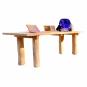 Alle Elemente bestehen aus witterungsbeständigem, superstabilem Robinienholz. Die Platte des Lehrerpults besteht aus recycelbarem Polyethylen in Gelb oder Blau.
