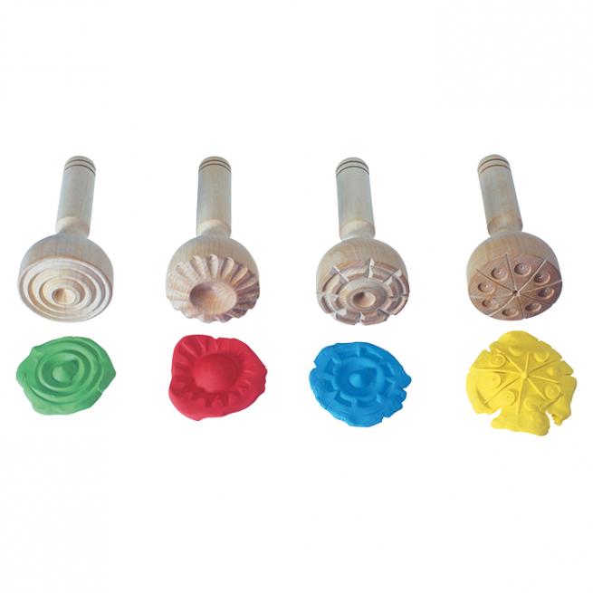 Formen und Verzieren leicht gemacht. Holzstempel mit 4 verschiedenen Motiven. Gut zu greifen.