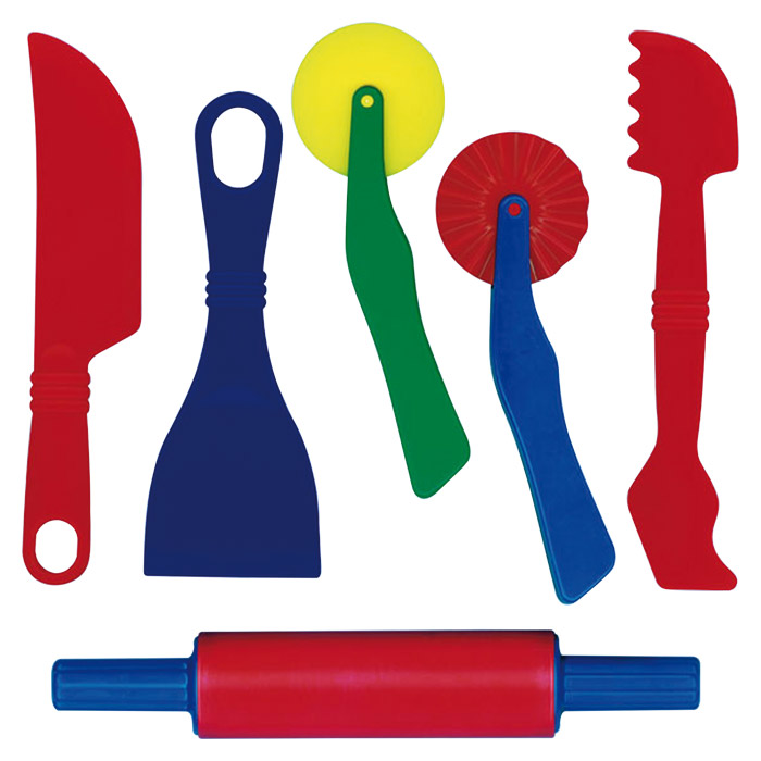 Ob rollen, schneiden oder verzieren – mithilfe dieser 6 robusten Knetwerkzeuge aus Kunststoff fabrizieren Ihre Kinder die tollsten Knetkunstwerke.