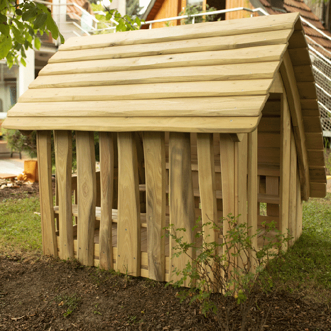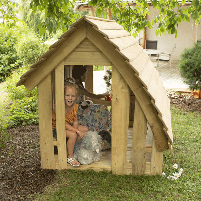 Auf gehts, hinter die sieben Berge zu den sieben Zwergen. Oder ins Hexenhäuschen … Diese urige Hütte bespielen die Kinder in sämtlichen fantastischen Varianten. Auch als Rückzugsort im Außenbereich ist das heimelige Knusperhäuschen aus witterungsbeständigem Robinienholz bestens geeignet.