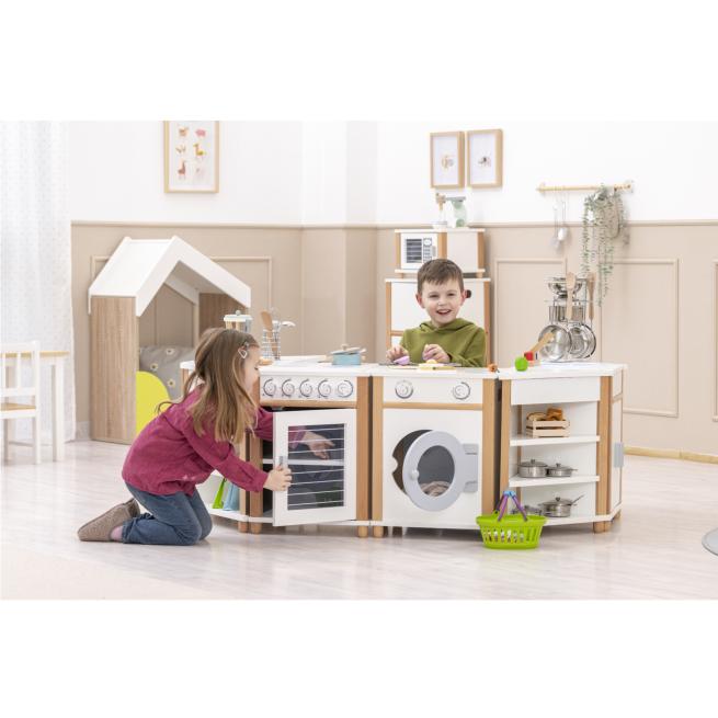 • 8-teilige Spielküche mit Herd, Backofen, Spülbecken, Spülmaschine, Waschmaschine und 4 Regalen
