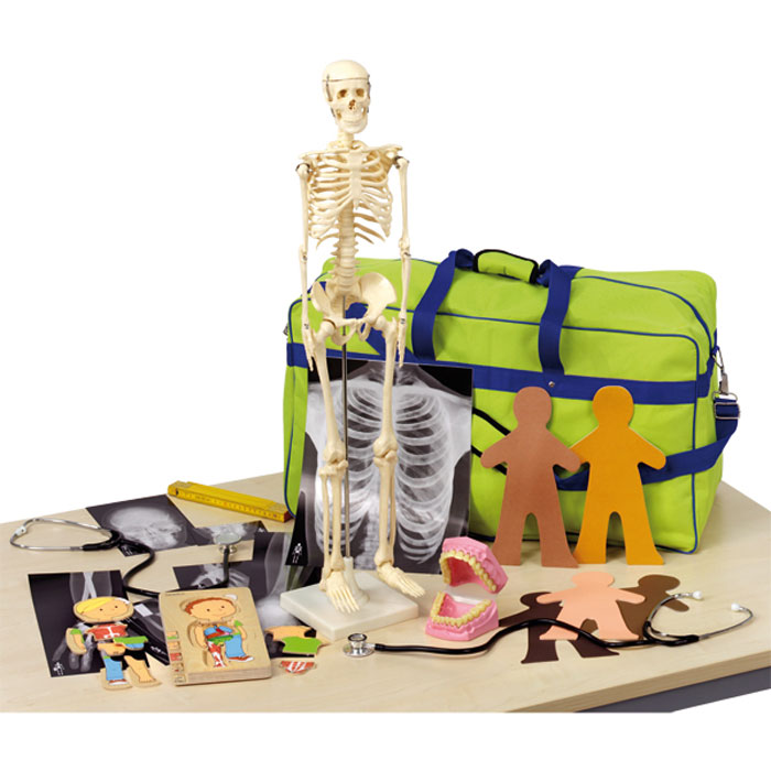 Der Aufbau des eigenen Körpers und seine Funktion fasziniert Kinder. Er ist für sie überaus beeindruckend. Das benennen der Körperteile, das Hören des Herzschlages, die Anordnung der wichtigsten Knochen, die Anzahl der Zähne - mit den Materialien aus dieser Kiste und dem eigenen Körper werden ihre Kleinen zu forschenden Spezialisten in Sachen Körper. Ob Stilleübungen mit dem Stethoskop oder Partnerübungen mit einem Maßband - dieses Set bietet Möglichkeiten, das Körperbewusstsein zu entwickeln.